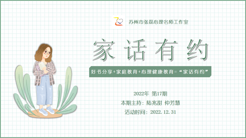 2022年12月31日上午,苏州市张磊心理名师工作室“家话有约”栏目第十七期线上直播如约进行。本期节目分享了心理书籍《与青春期和解:理解孩子思想行为的心理学指南》的第七章内容“同龄群体的力量”,探讨如何看待孩子的朋友圈、引导孩子正确择友,与家长连麦对话“如何应对青春期孩子的朋友圈”。