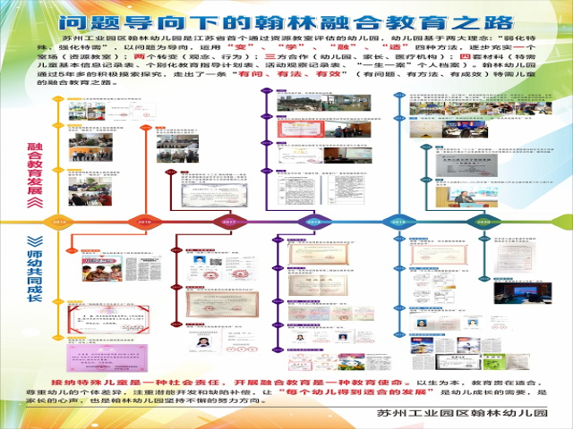 苏州工业园区翰林幼儿园是首个通过江苏省资源教室评估的幼儿园。翰林幼儿园将融合教育与党建品牌相结合,将特需儿童的“小融合”做成党建引领的“大融合”,充分发挥党组织和党员在惠及幼儿全面发展、服务教师专业成长、促进事业科学发展等方面的战斗堡垒作用和先锋模范作用。幼儿园基于两大理念:弱化特殊,强化特需,以问题为导向,通过5年多的积极探索研究,逐渐走出了一条“有问题、有方法、有成效”的特需儿童融合教育之路。“融爱前行”党建项目获得了苏州工业园区先进基层党组织“一校一品”优秀党建项目称号,幼儿园成为了园区首批通过四星级党组织的幼儿园。