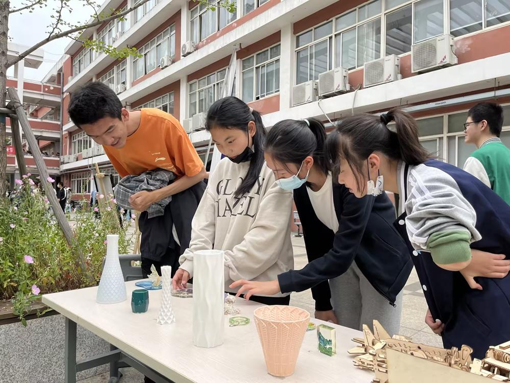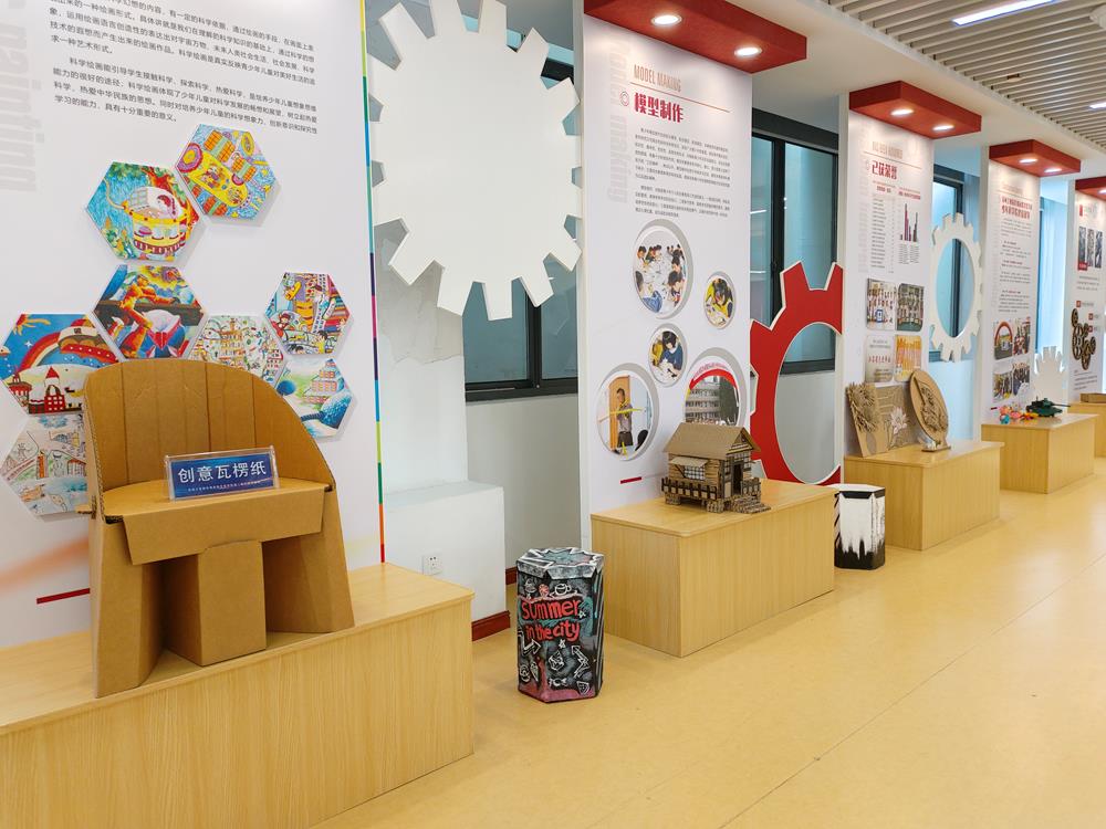 创意瓦楞纸、陶瓷3D打印、激光雕刻、木工等科创作品在园区星海实验中学、朝前路实验学校引起了很大的反响。