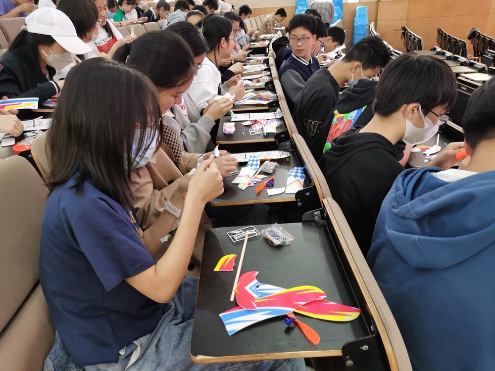 在无人机体验活动中,专家老师介绍了固定翼飞行器、火箭、卫星等航空航天相关的知识,激发了学生对于宇宙和航空航天领域的好奇心;自己动手制作航空模型和无人机表演及体验的环节,点燃了学生的航空航天强国梦。