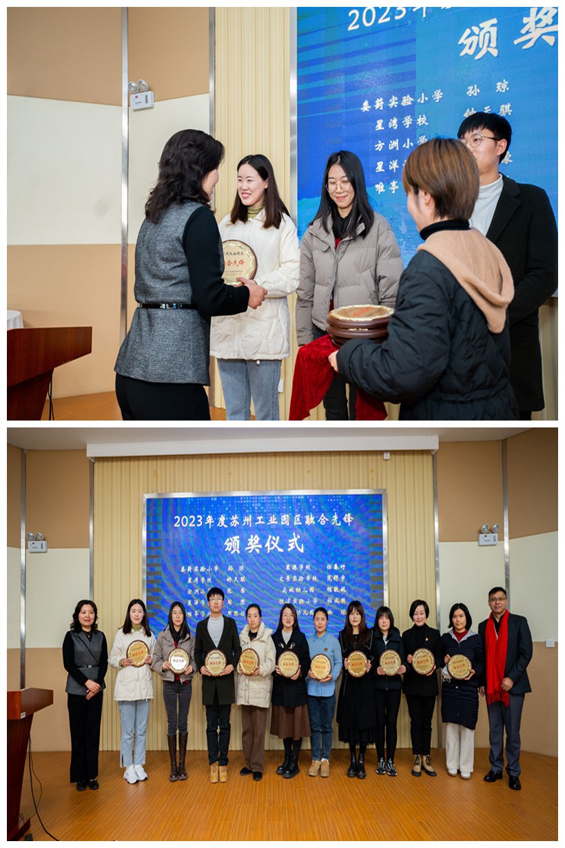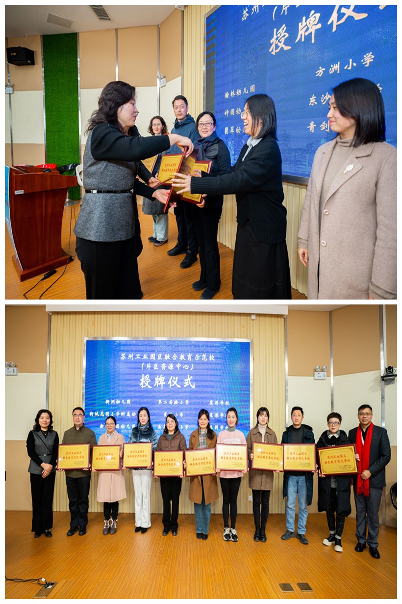 接着,一场融合教育主题沙龙演绎出园区融合教育团队的别样风采!园区六所学校的校长、教导主任、德育主任、班主任及资源教师代表分别从校级支持、教务管理、家校沟通、班级经营、专业成长方面分享特殊需要学生的教育教学经验。每一句诚挚表达,每一个鲜活案例,真实、接地气的沙龙分享引发现场教师阵阵共鸣。沙龙结束,范里主任宣读园区融合教育片区资源中心学校名单及融合先锋获奖教师名单。徐晓燕副局长为获奖的学校及教师颁发奖牌。