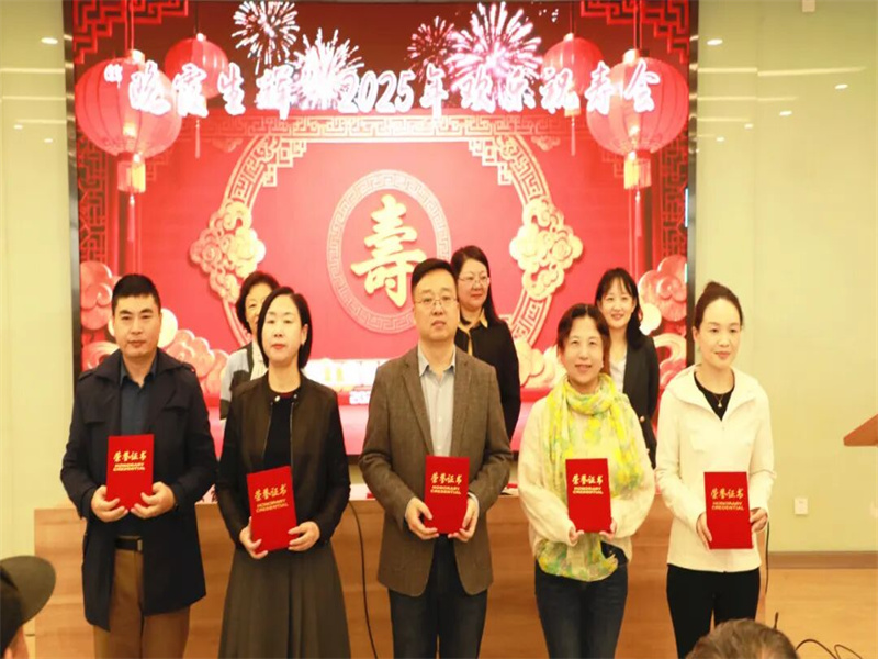 在温馨的乐曲中,教育局领导向全体寿星送上贺礼。各校退教工作负责人作为代表上台接受这份饱含深情的节日礼物,现场洋溢着感动与欢笑。