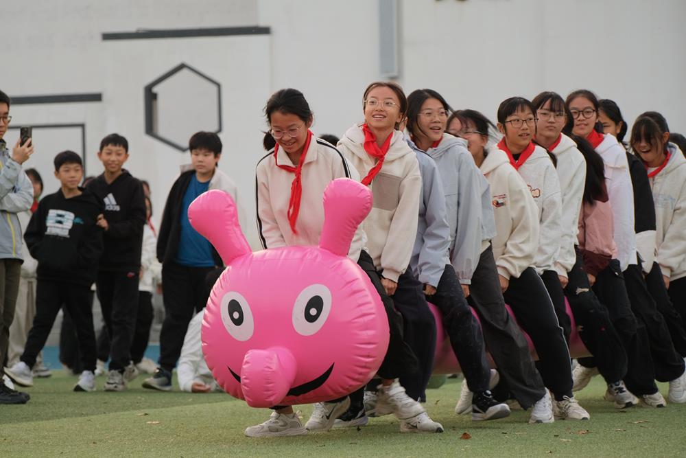 随后,园区一中与金鸡湖学校打响篮球揭幕战,球员们攻防交错、配合默契,场边欢呼不断。与此同时,操场上“毛毛虫赛跑”趣味运动会同步开启,欢声笑语中尽显青春活力。
