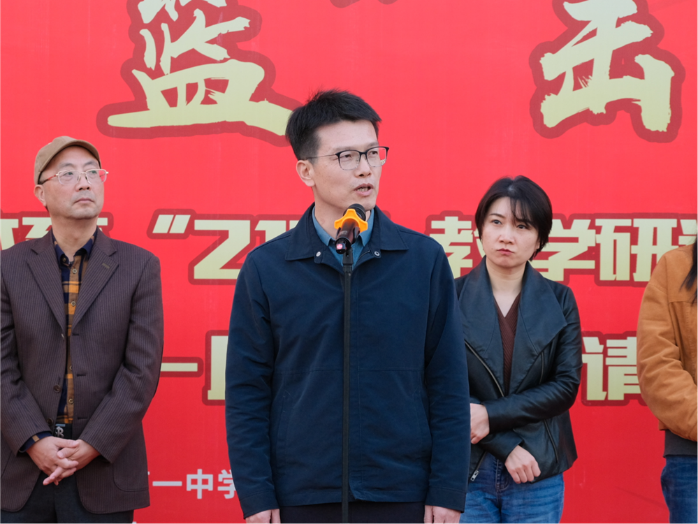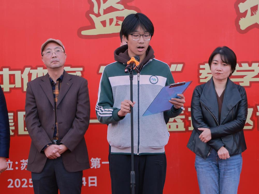 园区一中书记赵小军致辞,他提到“2·15”专项行动是“五育融合”的重要举措,希望这场赛事,能让大家感受到体育带来的快乐和力量。
