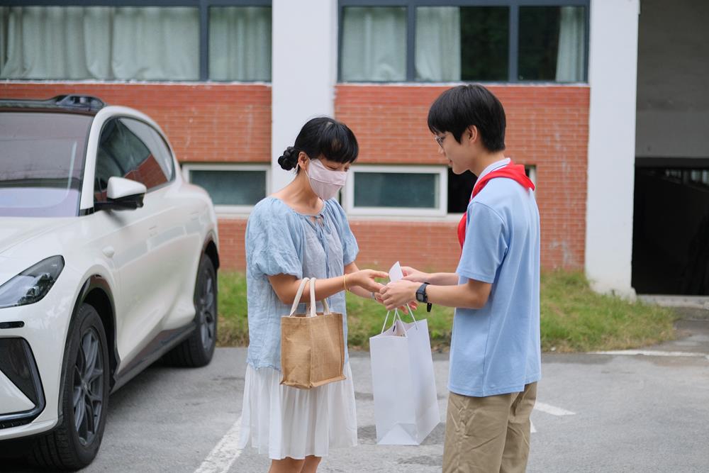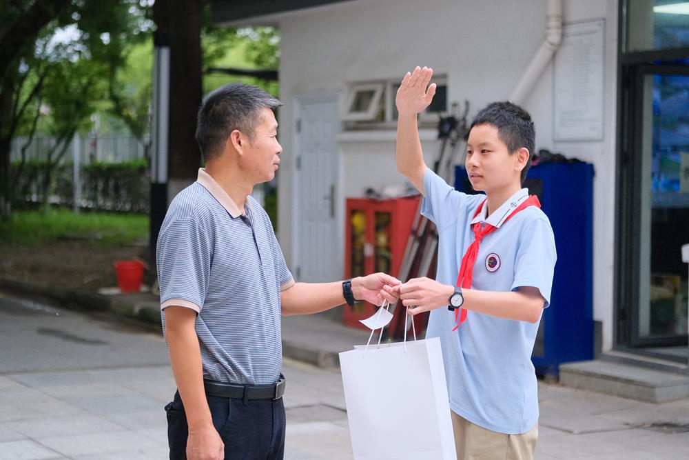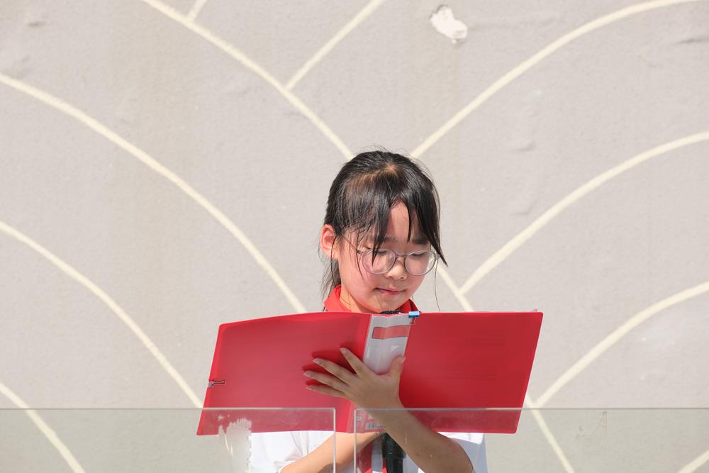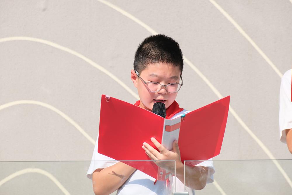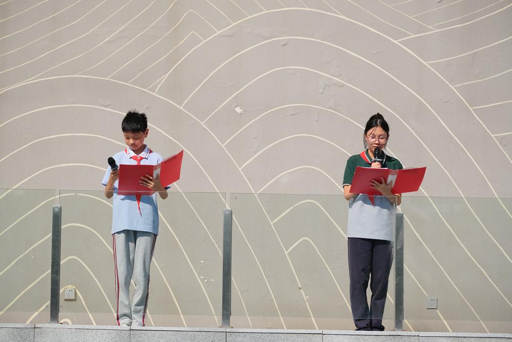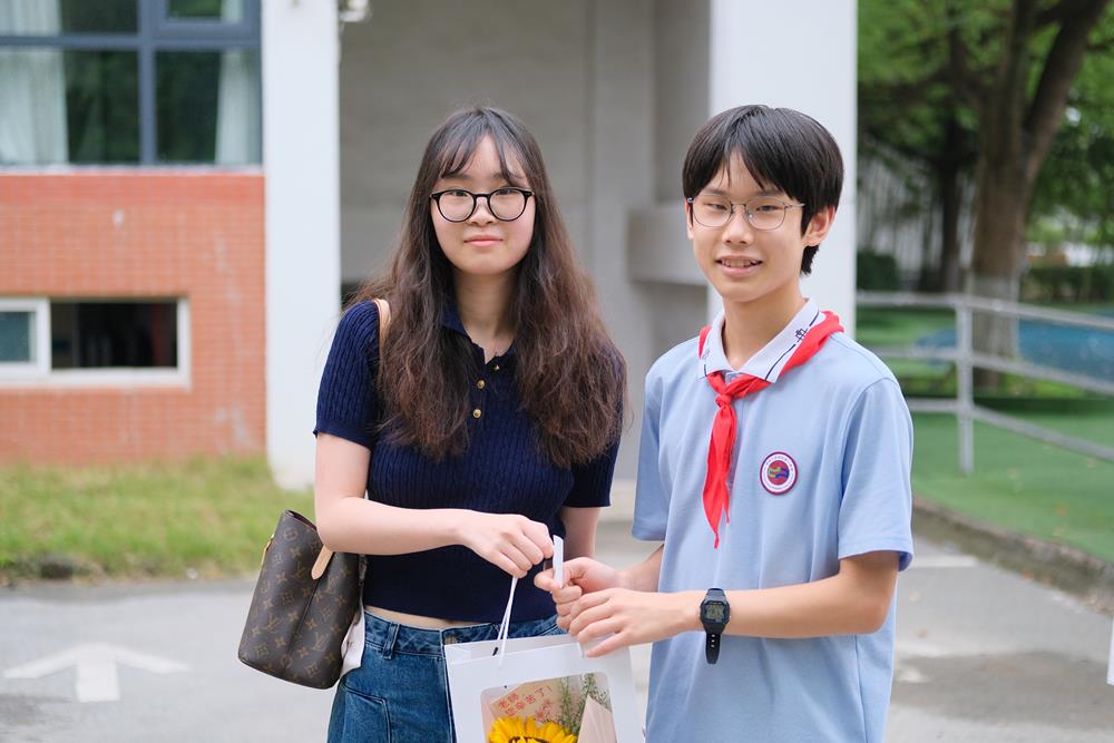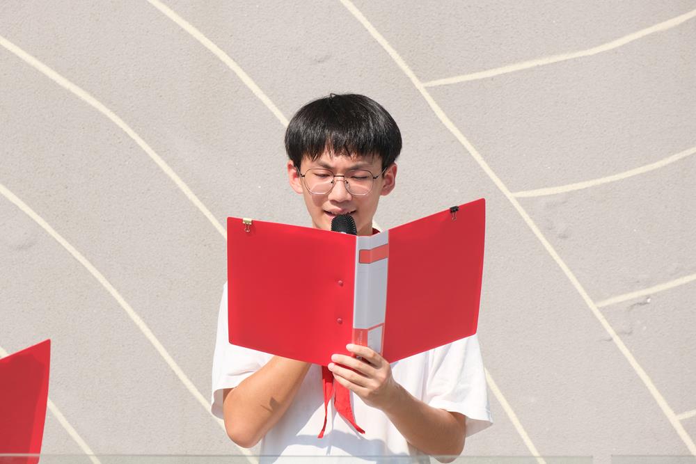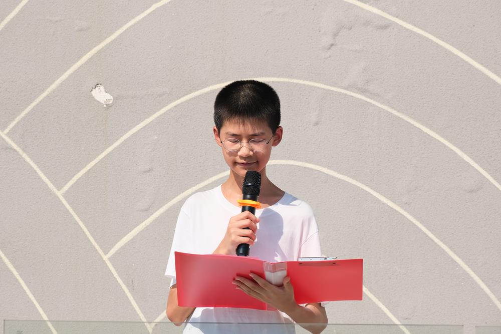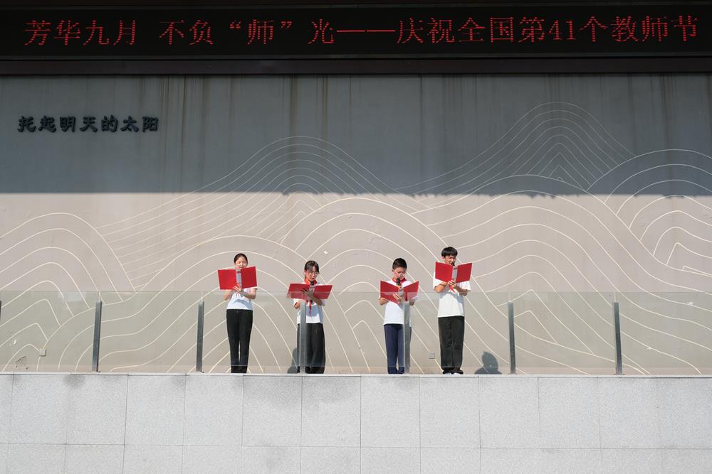 庄严的升旗仪式在操场隆重举行。伴随着国歌声,学生代表们以深情的朗诵表达对老师的感激之情。优秀毕业生代表李许子悦也重返母校,分享初中学习时光老师给予的指引与温暖。