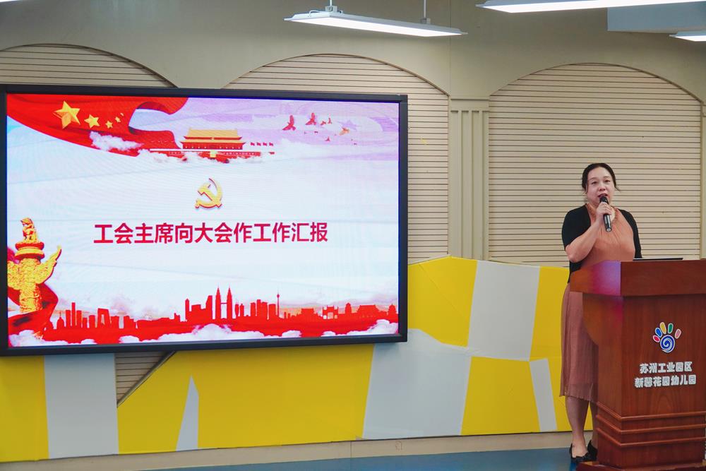 首先,由工会主席王伟萍老师向全体工会会员作工会工作报告,经审委员徐伊丽老师就园所工会经费的管理和使用向大会作经审汇报。紧接着,万若松园长与全体教职工一起回顾了园所近几年的幼儿园在教育教学、园所建设、师资培养等方面取得的成绩,对全体教职工的辛勤付出表示衷心感谢。同时,园长也结合当前幼儿教育发展趋势,为幼儿园未来的发展指明方向。园长的致辞,让大家对未来充满信心,也激发了全体教职工的工作热情。随后工会委员殷梦娇老师,对于幼儿园新增的《后勤临聘人员管理制度》及新修订的《新馨花园幼儿园医疗报销制度》等4条制度进行了详细的解读并举手表决,全票通过。