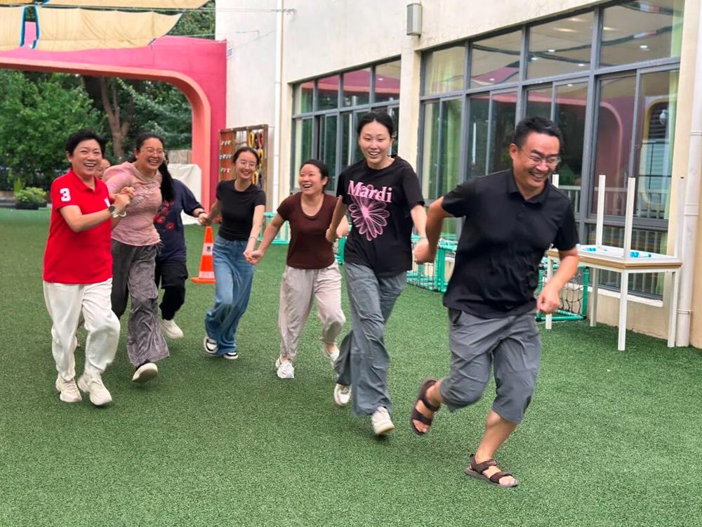 活动最后,教职工们三两一组、积极参与团建破冰小游戏,轻松欢快的氛围漫溢在整个空间。在这阵阵此起彼伏的笑声里,翡翠幼儿园全体教职工不仅打破了新老伙伴间的陌生感,更在趣味互动中悄然增进了彼此的默契、拉近了心与心的距离,团队凝聚力也在不知不觉中提升,为今后各岗位高效协同、携手推进园务工作筑牢了坚实的信任基础。