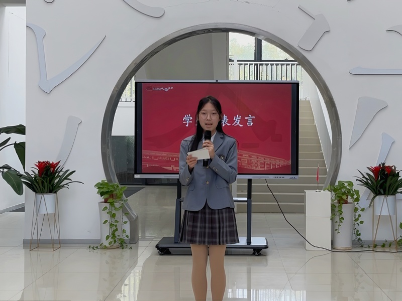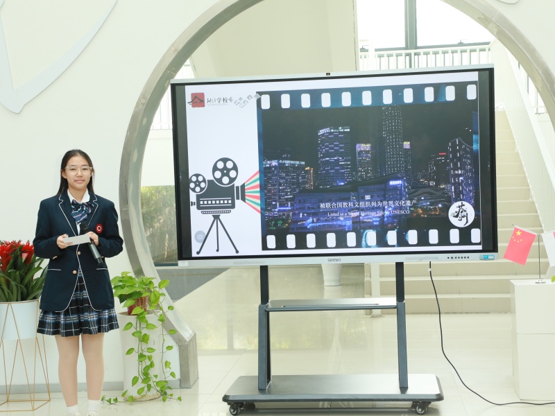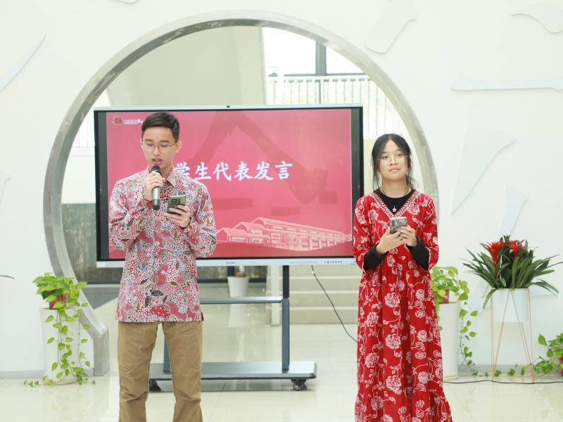 斜塘学校师生代表在学校图书馆大厅举行了独具特色的欢迎仪式。欢迎仪式上,双方学生代表分别为大家分享了两国文化和和校园特色,在交流中拉近彼此距离。