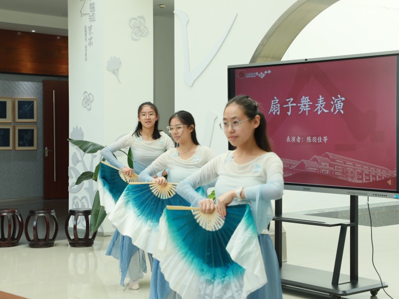 为迎接远道而来的客人,斜塘学校评弹社与中国舞社团的同学们献上精彩表演:一曲《声声慢》,吴侬软语浅吟低唱,勾勒出水墨江南的温柔轮廓;一段中国舞,衣袂轻扬翩跹起舞,展现出东方艺术的典雅气质。