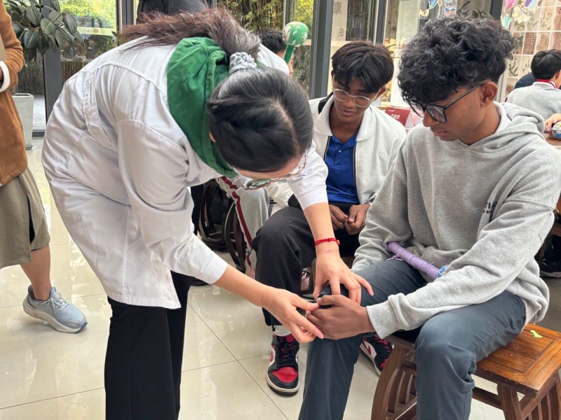 学校特邀星塘医院中医团队,带来中医药文化体验课。师生共同制作艾草养生锤,探秘人体穴位,感受中医“治未病”的养生哲学。