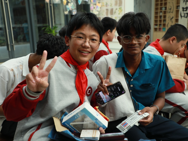 两日时光匆匆,欢送会上,两国学子谈天说地、服装走秀、合唱歌曲、演奏二胡,在真诚交流中互留联系方式、互赠心意礼物。镜头定格笑容,拥抱温暖秋日,短暂相聚所结下的情谊,已深深烙印在彼此心中。