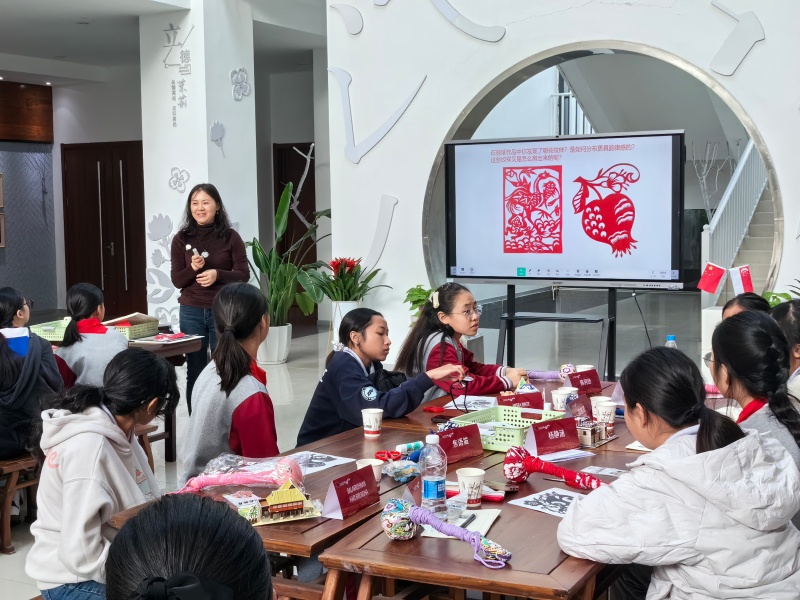 美术组沈凤喜老师以药食同源的本草为素材,引导学生合作创作吉祥剪纸。指尖翻飞间,传统艺术与自然本草巧妙融合,焕发新的生命力。