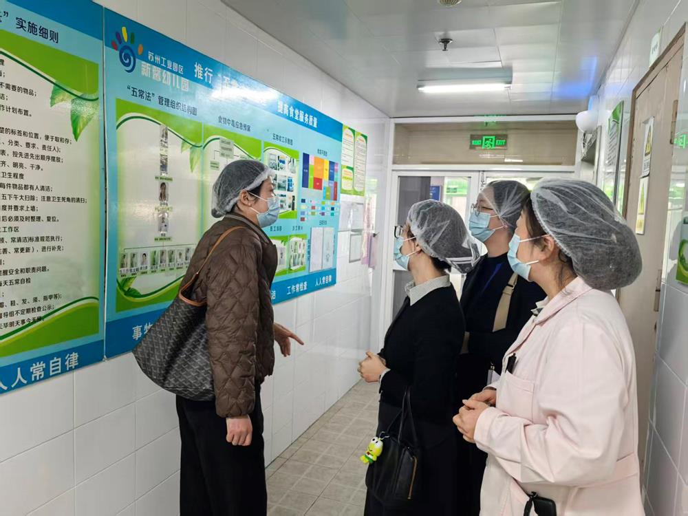 2025年11月24日上午,苏州工业园区新馨花园幼儿园接受了由苏州市妇幼保健院孟玉梅主任带队,各区妇幼保健领导组成的专项督导组督导。园长万若松、副园长许圆圆、保健分管负责人王伟莉老师全程陪同,督导组实地查看了保健室、普惠托育点、幼儿活动室、新馨生活课程活动现场、食堂等关键场所,王伟莉老师就我园的卫生保健工作进行了详细的汇报。
