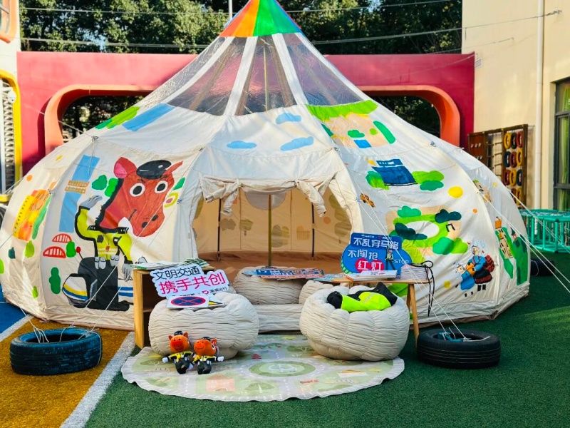 草坪上,交警叔叔们早早搭起了一座“大马警官”主题帐篷,两辆酷炫的铁骑摩托车静静停在一旁,瞬间点燃了孩子们的热情,引来阵阵欢呼。