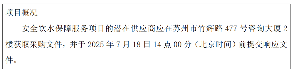 苏州工业园区星港学校关于安全饮水保障服务项目的磋商公告
